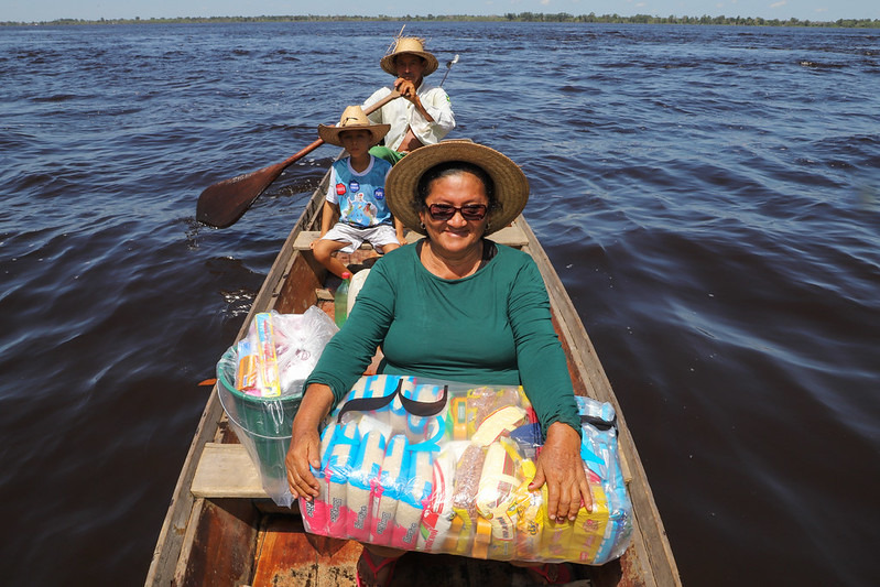 Na Comunidade São Francisco de Mainã, às margens do lago do Puraquequara, os moradores celebraram a chegada da ajuda: