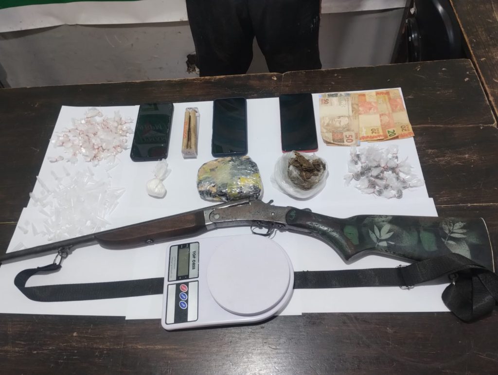 O homem responderá por tráfico de drogas e posse irregular de arma de fogo de uso permitido e ficará à disposição da Justiça.